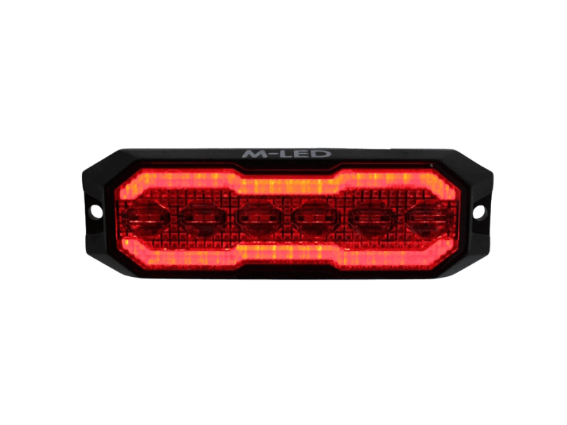 M-LED 6 LED Strobe mit orange und rot leuchtendem Halo-Ring.