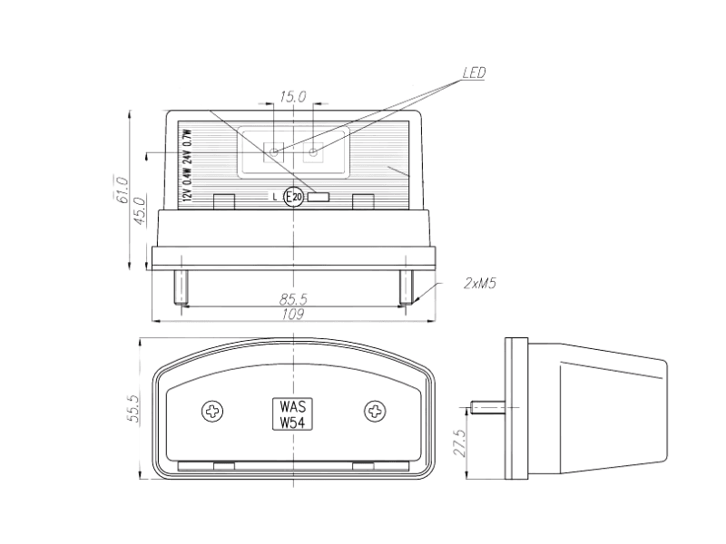 To make sure you can mount the license plate unit where you want, we’ve noted the dimensions below. The dimensions of the WAŚ W54 LED license plate light are as follows: